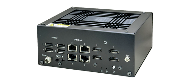 CPUは第13世代 Intel® Core™ プロセッサ(i5 / i3)を搭載。メモリとストレージはDDR5とNVMe SSDを採用し、メモリは最大32GB、SSDは最大1920GBに対応。インターフェースは2.5GbE LAN×4、USB 10Gbps(USB 3.2 Gen 2)×4、オーディオはLine-Out/Mic-Inを装備しています。