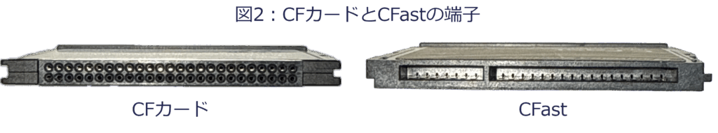 外形サイズはCFカードと同じながらCFカードのPATA I/Fとは異なり、CFastはSATA I/Fを持つSSDとなります。